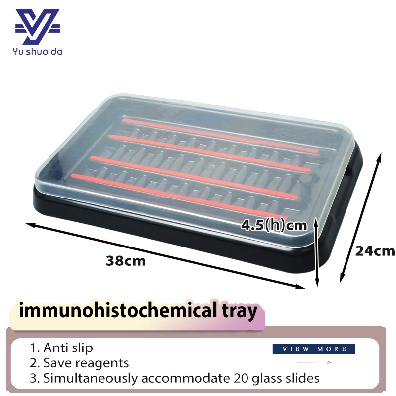 Special staining slide tray for IHC can accommodate 20 slides at the same time; The unique design of the staining tray can save a lot of waste discharge time during the staining process, reduce your workload, And the design with cover ensures the safety of the slide during transportation; It is especially suitable for manual IHC staining.